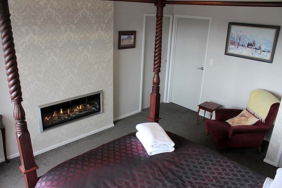These Suites are equipped with beautiful leather and antique Kauri pine and oak furniture. The bedroom features a gas fireplace, a king size bed and a single bed. Free parking is provided next to the rear decks.